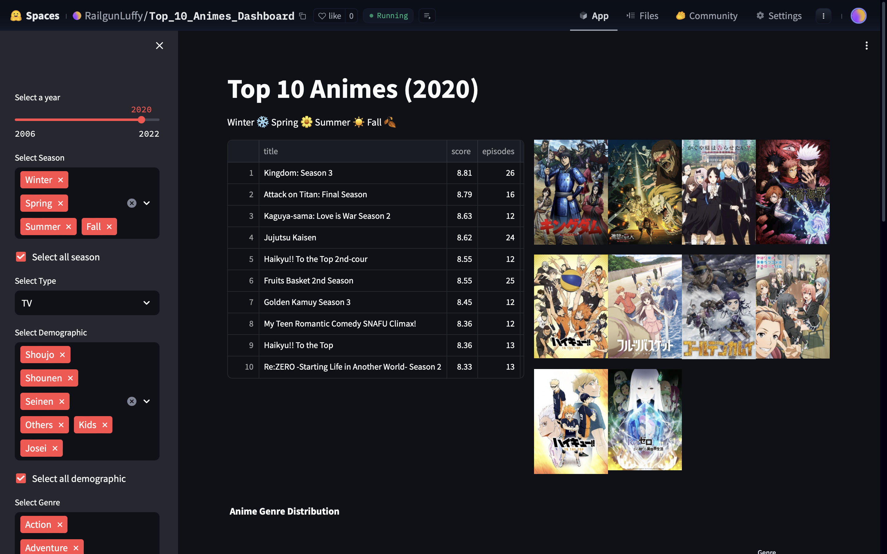 Interactive top 10 japanese animation series and movies across years dashboard and visualization charts